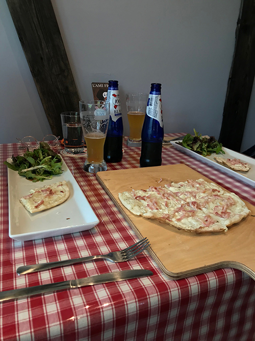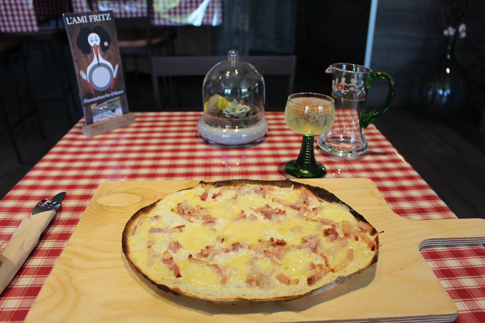 Vous avez là le délicieux plat signature, soit la tarte flambée L'Ami Fritz.