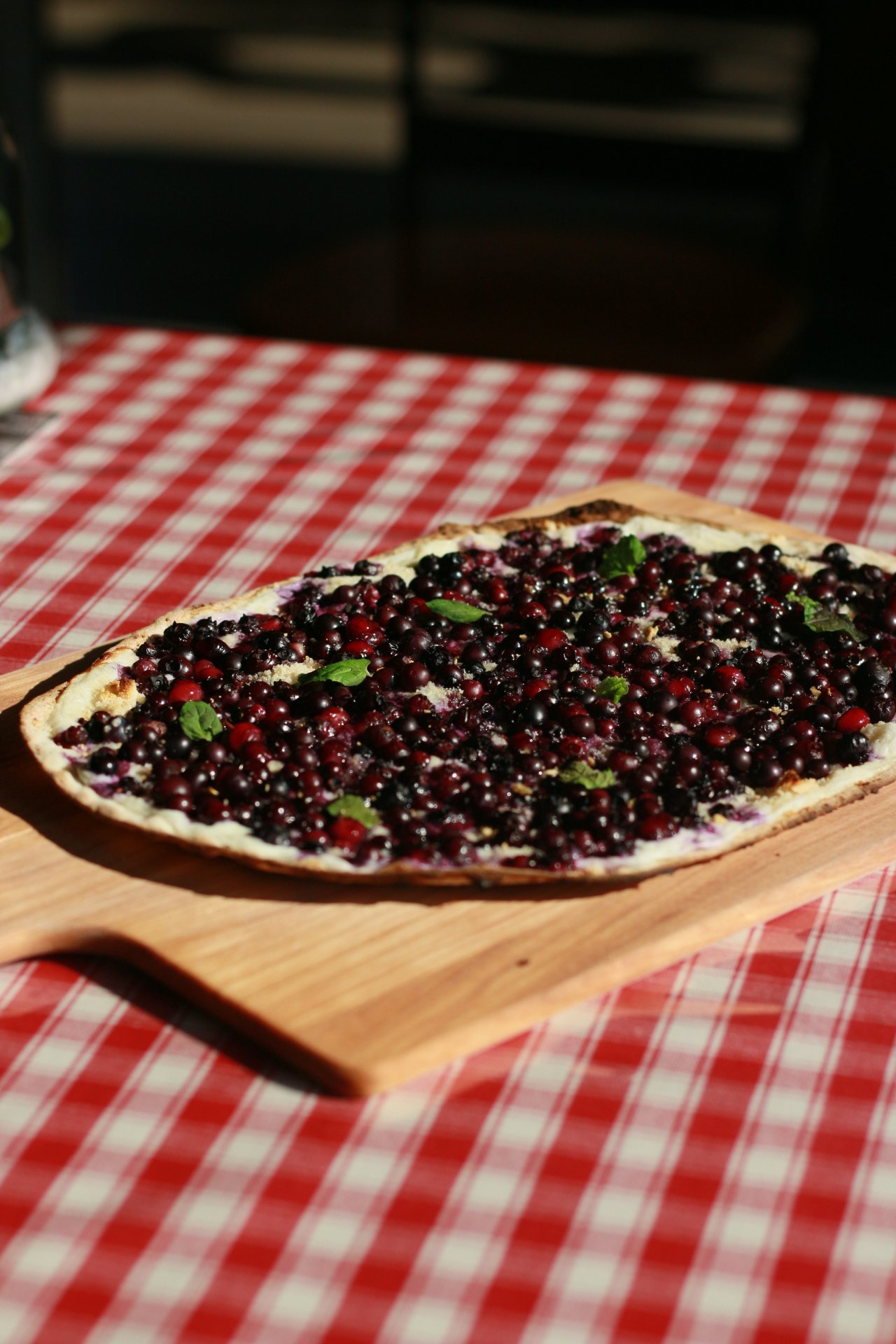 Imaginez une fine pâte à pain faite maison, un mélange de crème cuisiné sur place et une garniture au choix.